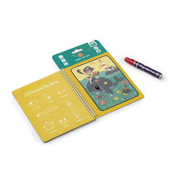 ¡Desenrosca, llena de agua y pinta! Los peques podrán pintar las láminas de este libro con un rotulador de agua mágico, descubriendo poco a poco las princesitas que se esconden debajo. Cuando se secan, vuelven a su estado original, permitiéndoles pintarlas las veces que quieran desde 0. Además, en el reverso de cada lámina se explican los elementos que aparecen en inglés, familiarizando a los peques con esta lengua extranjera. ¡Water Doodle Book Under the sea es perfecto tanto para divertirse como para aprender!